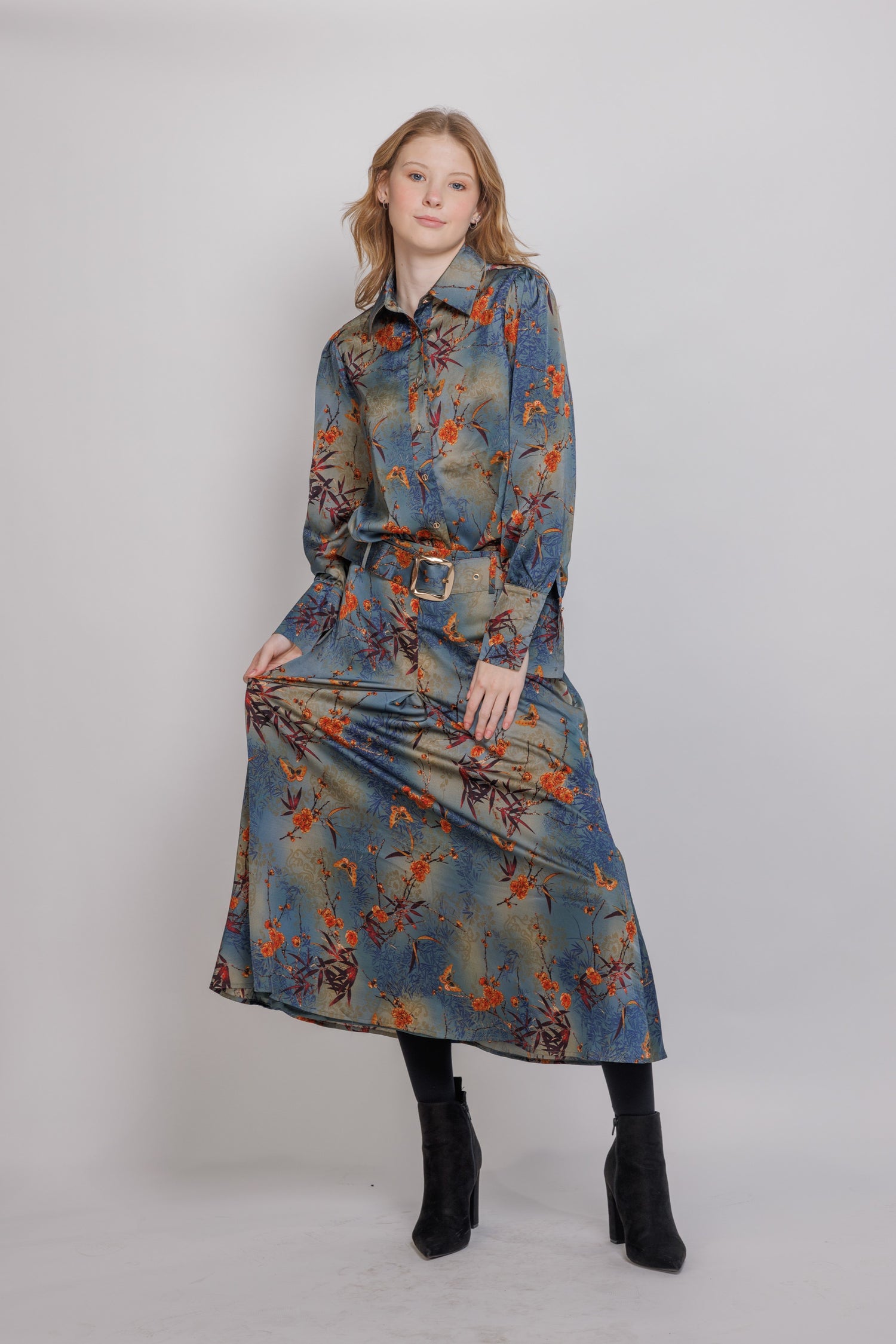 Aline midi skirt with gold buckle belt